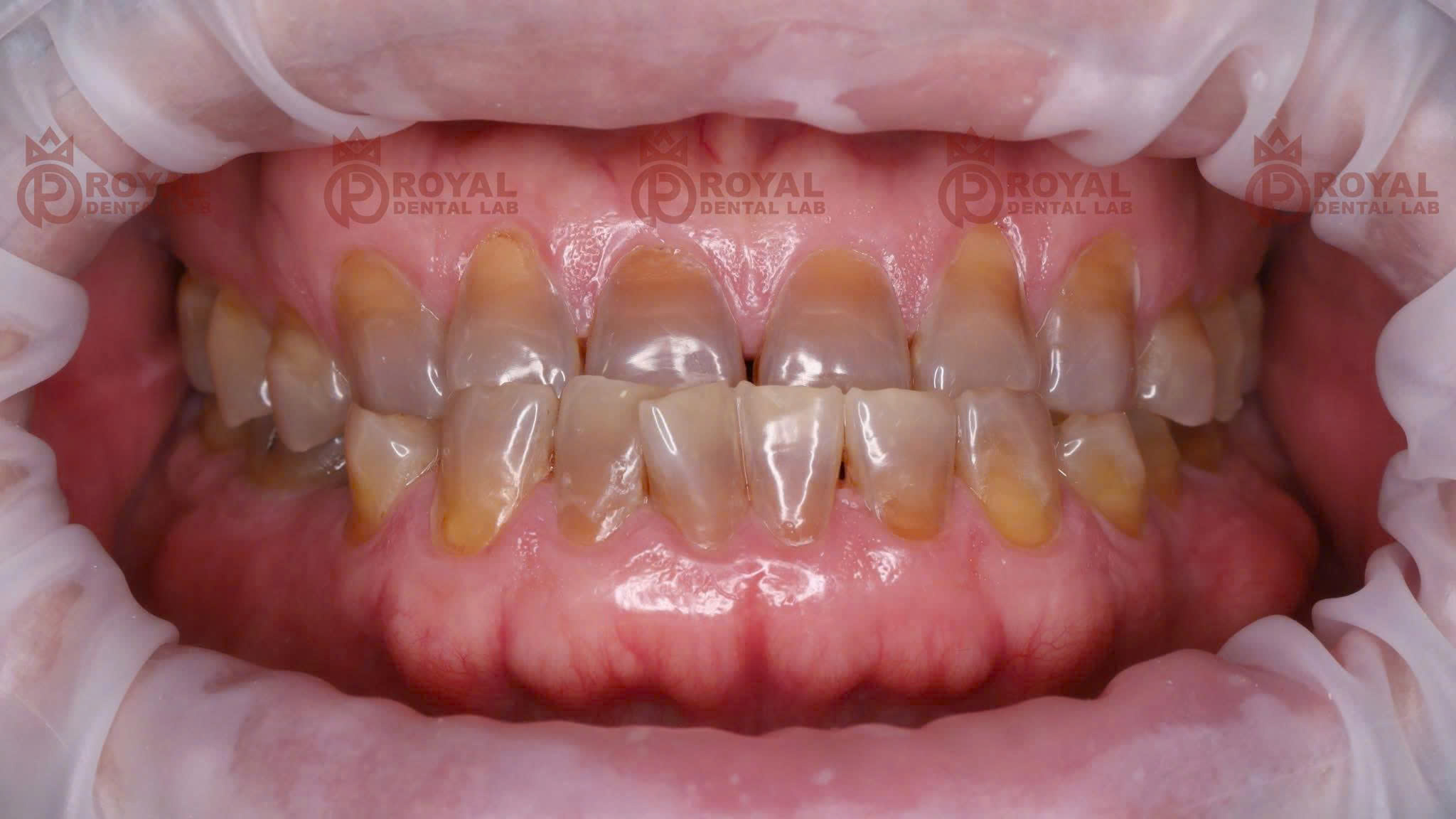 Trong ca lâm sàng do Royal Dental Lab thực hiện, bệnh nhân gặp tình trạng khớp cắn ngược. Do đặc thù sai khớp cắn, lực nhai của bệnh nhân rất mạnh, có thể lên đến $1000N$. Điều này đòi hỏi vật liệu phục hình phải cực kỳ bền bỉ.